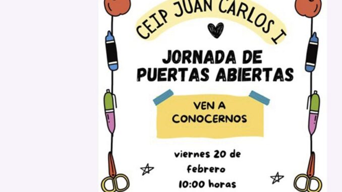 La cita tendrá lugar el viernes 20 de febrero a las 10:00 horas en el CEIP Juan Carlos I de Seseña. Las familias podrán recorrer las aulas y las dependencias del centro para valorar su oferta educativa. El encuentro está pensado para facilitar información y atender consultas de las familias interesadas. La convocatoria se realiza según el CEIP Juan Carlos I.